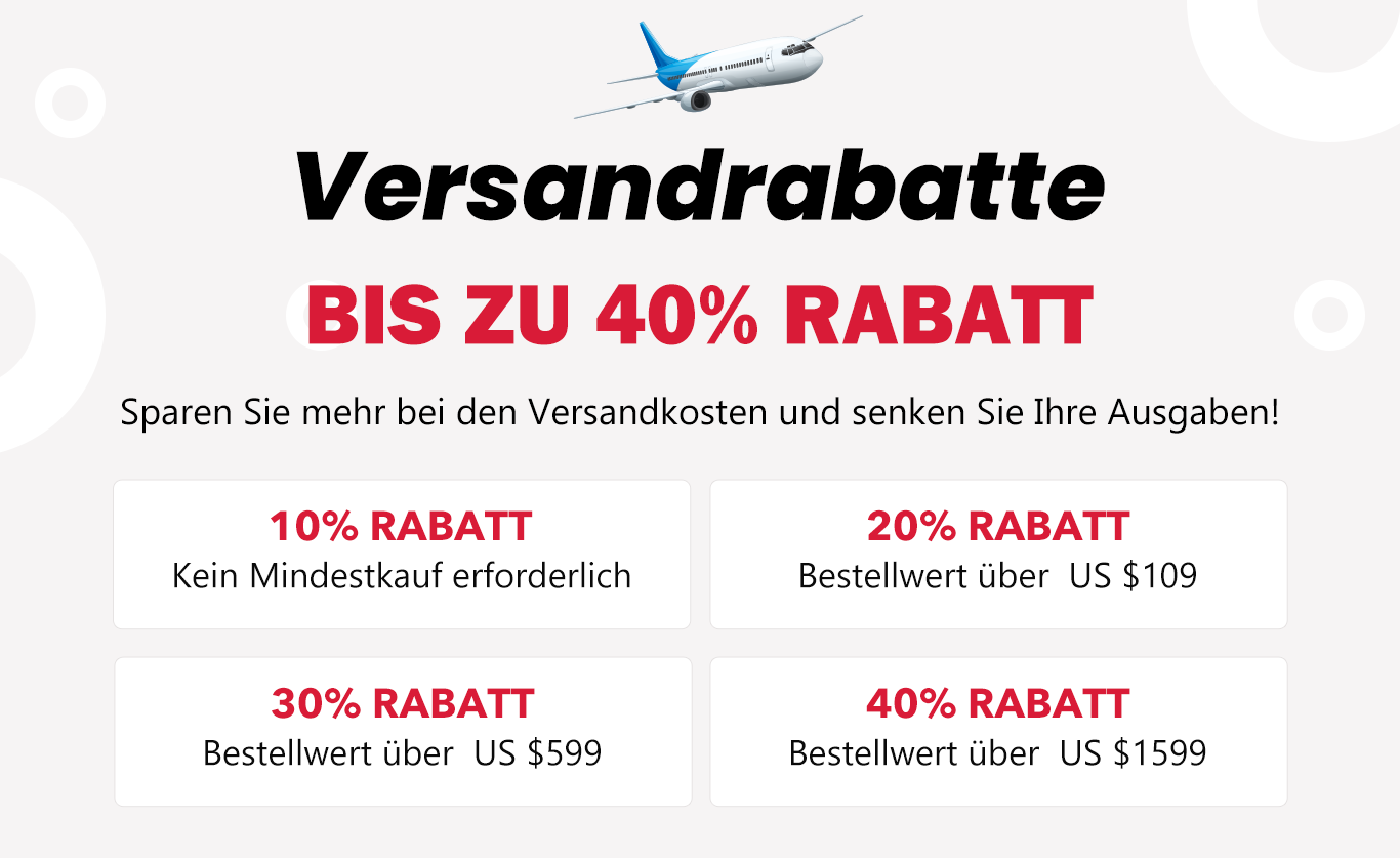 Versandrabatt ist für alle Versandarten (einschließlich Versand aus Deutschland) verfügbar.